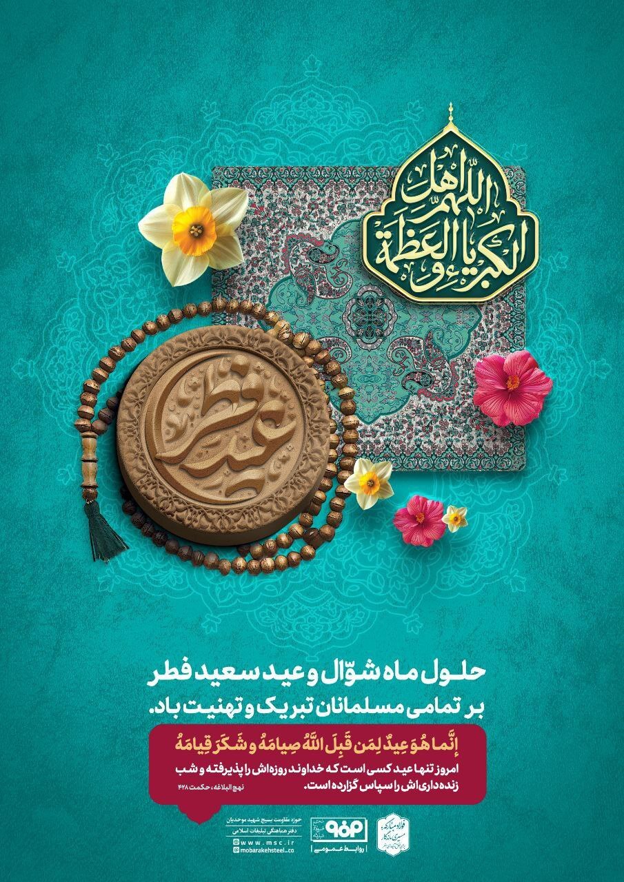 حلول ماه شوال و فرارسیدن عید سعید فطر را به همکاران محترم و ارجمند رسانه‌ای تبریک عرض می‌نماییم.