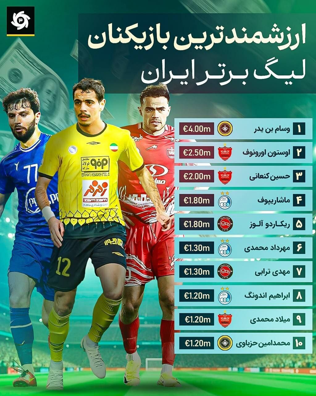 عکس / ارزشمندترین بازیکنان لیگ برتر ایران / بمب سپاهان جدول را به هم ریخت