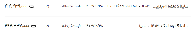سرویس اقتصاد «انتخاب»: قیمت ساینا، امروز ۱۶ فروردین ۱۴۰۴ در مدلهای «دندهای، اتوماتیک و دوگانه» اعلام شد.