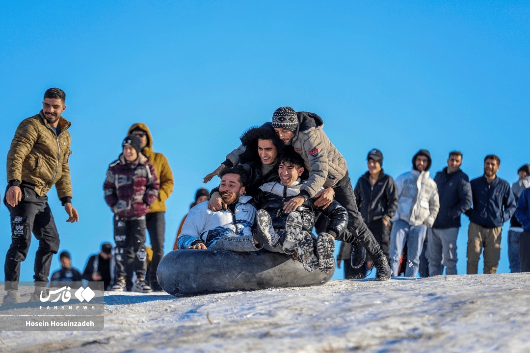 اردبیلی‌ها امروز پس از بارش برف در این شهر خود را به تپه‌های اطراف شهر رسانده و به تیوب‌سواری و برف‌بازی مشغول شدند.