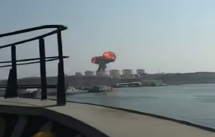 ببینید / تصاویری از لحظه اصابت پهپاد به مخزن نفتی در عمان