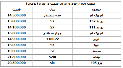 قیمت خودروهای ارزان‌قیمت/ جدول
