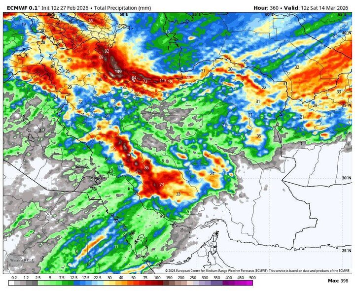 وی افزود: فردا (جمعه، ۲۹ اسفند) این شرایط برای نیمه غربی و به‌صورت پراکنده در نقاطی از جنوب و جنوب شرق کشور ادامه خواهد داشت.رئیس مرکز ملی پیش‌بینی و مدیریت بحران مخاطرات وضع هوا ادامه داد: روز جمعه بیشینه بارش‌ها در استان‌های کرمانشاه، ایلام و لرستان و همچنین شمال استان‌های خوزستان و فارس پیش‌بینی می‌شود.