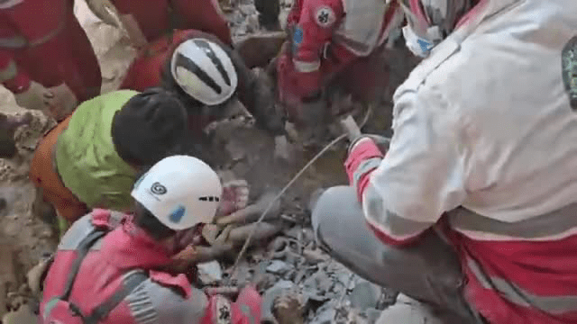 اشکهای امدادگران در تبریز هنگام بیرون آوردن پیکر یک کودک از زیر آوار را ببینید.