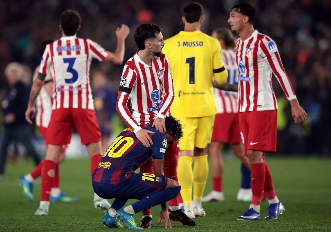 در ابتدای بازی و در هیاهوی آغازین این جدال حساس، لامین یامال روی اشتباه و تعلل خط دفاعی اتلتیکومادرید دروازه خوان موسو را باز کرد تا سکوها به اوج هیجان برسد. شاگردان سیمئونه یکبار دیگر و در دقیقه ۲۴ غافل‌گیر شدند و این بار فران تورس در نقش گلزن ظاهر شد. این گل ضربه سختی بر پیکر هواداران اتلتیکومادرید وارد کرد و آنها را در سکوت فرو برد.