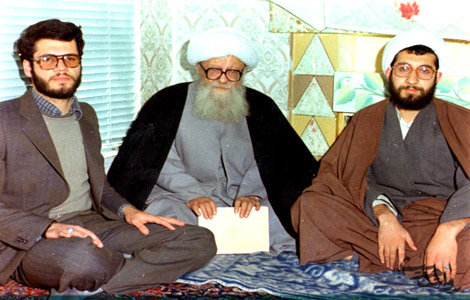 در تصویر زیر صادق لاریجانی (رییس قوه قضاییه)، مرحوم آیت الله آملی (پدر) و باقر لاریجانی ملاحظه می کنید.